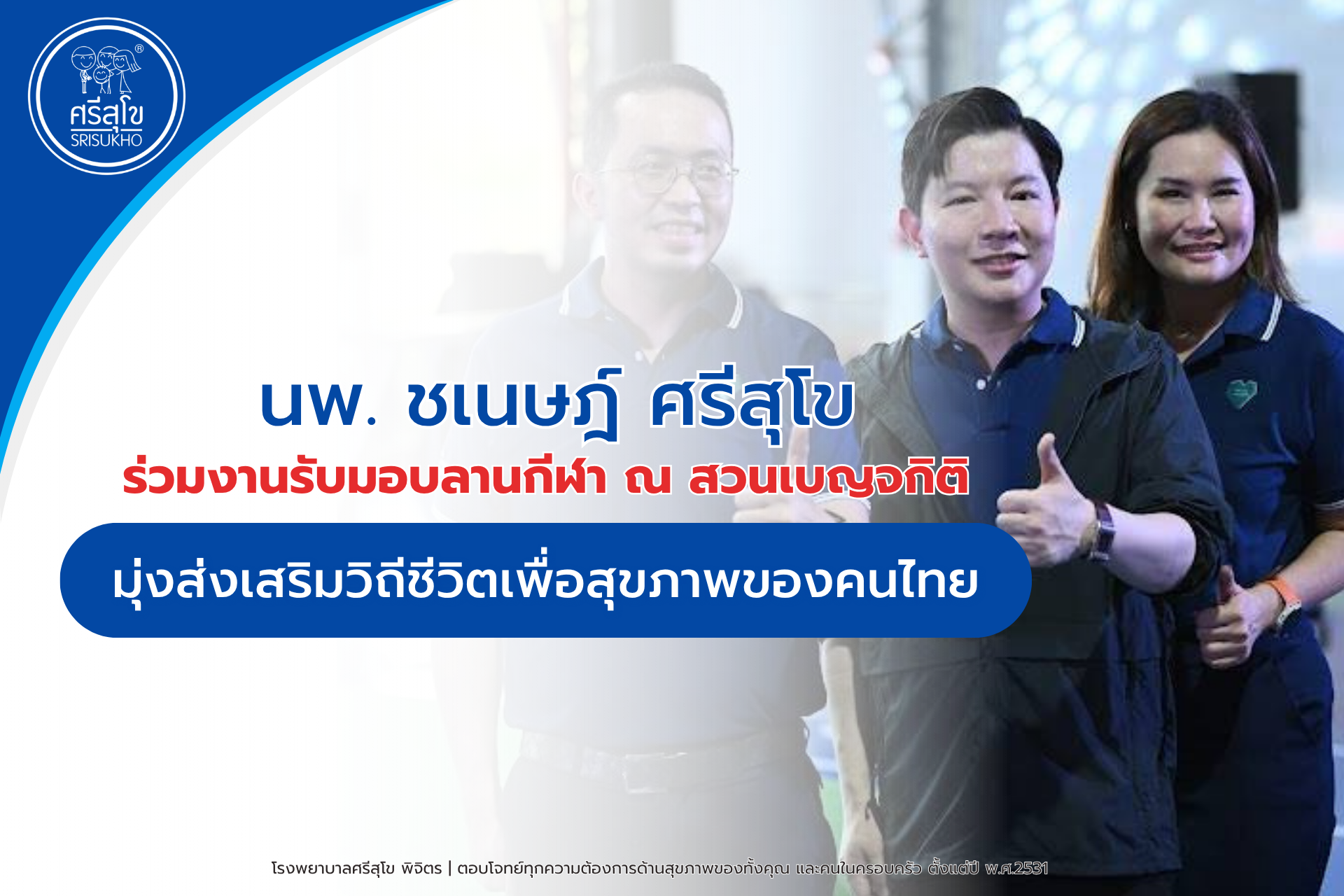 นพ. ชเนษฎ์ ศรีสุโข ร่วมงานรับมอบลานกีฬา ณ สวนเบญจกิติ มุ่งส่งเสริมวิถีชีวิตเพื่อสุขภาพของคนไทย