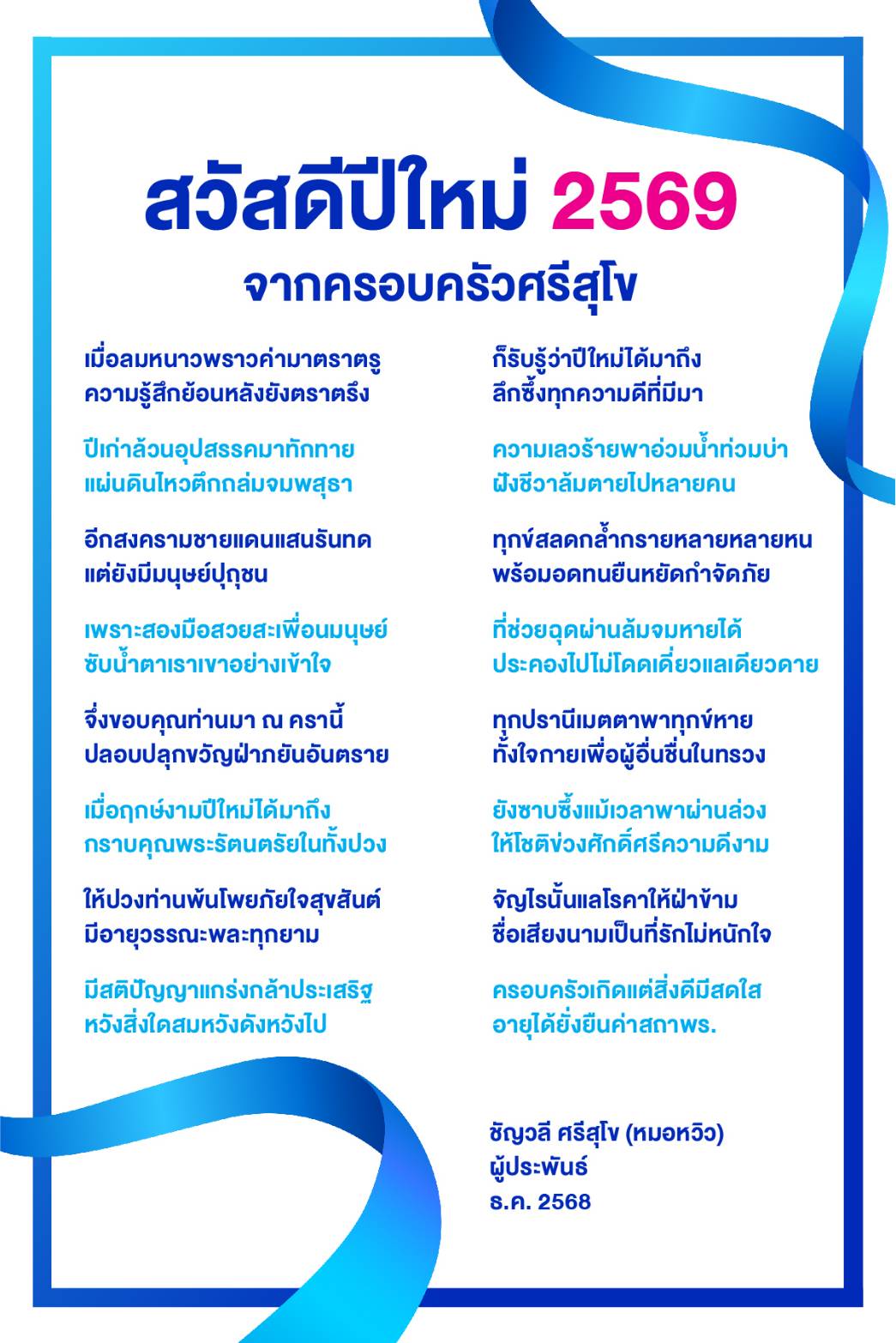 กลอน ส.ค.ส. 2026 (พ.ศ.2569) จาก อจ ชัญวลี ศรีสุโขHappy New Year 2026 card (Thai) from Dr.Chanwalee Srisukho , MD, OB-GYN